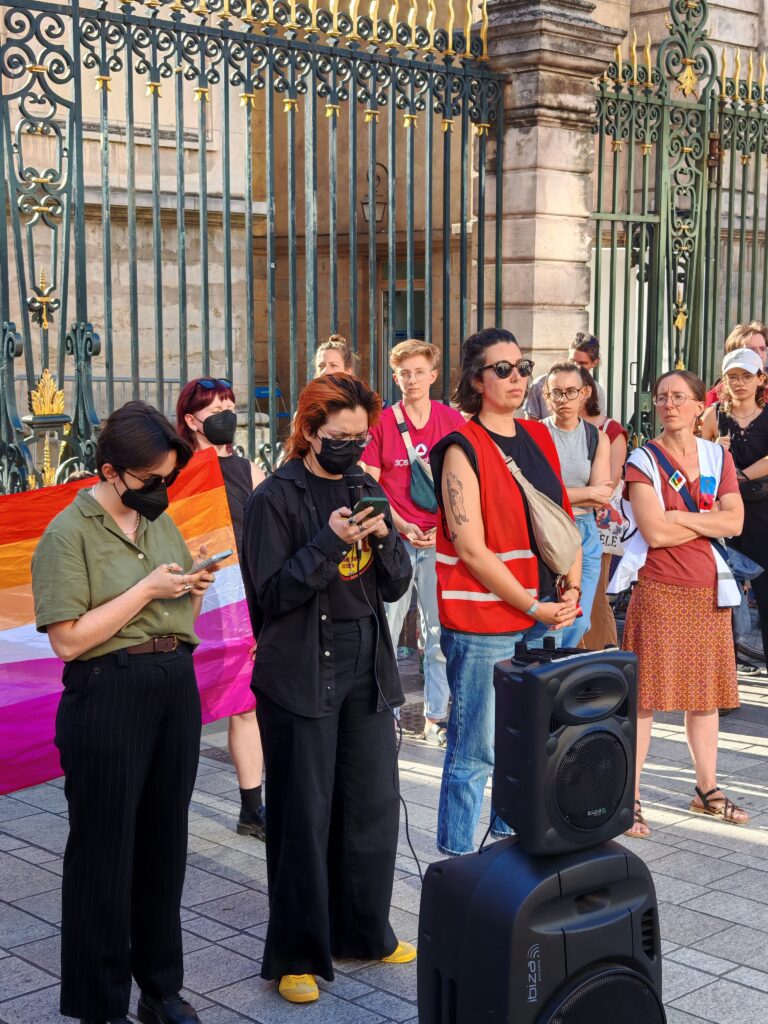 Ci-dessous : prise de parole de CO.LE.RE lors du femmage rendu à Caroline Granjean le 6 septembre 2025 à Lyon.